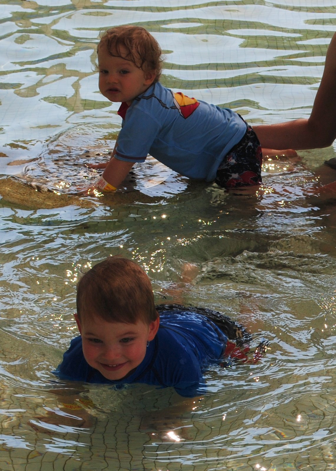 January 26th was Australia Day. We celebrated with a trip to the swimming pool. Eliot practiced some of the skills he's been picking up in his swimming lessons. Peter enjoyed cooling off in the pool and spent some quality time with Daddy in the shade while Eliot and I went to the big pool and did some jumping off the side and catching respectively.